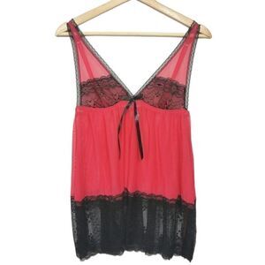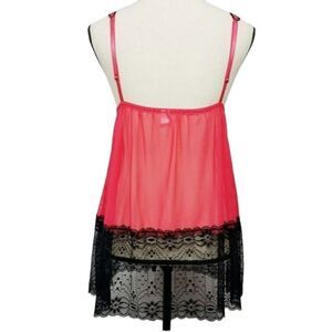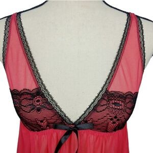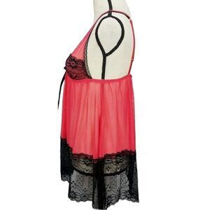Sheer Red with Black Lace Nightie, babydoll style with matching g-string. Brand new, NEVER WORN, no tags & unbranded. Listing as Victoria's Secret for exposure, but this item is unbranded.