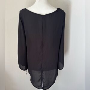 Haute Society black sheer blouse with fringe sleeves. No size tag.