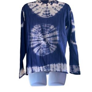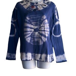 Sheesh Womens Medium Tie Dye Pullover Knit Top Purple White Embroidered Neckline Long Sleeves NWT