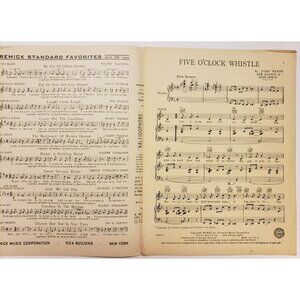 This sheet music "Five O'Clock Whistle" is a vintage swing featured by Glenn Miller ..Copyright 1940..Published by Remick Music Corp, written by Joseph Myrow, Kim Gannon & Gene Irwin.