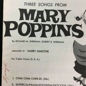 Sheet Music "I. Chim Chim Cher-ee" From Mary Poppins ©1963Walt Disney Production