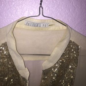 Sheet cream blouse w/ gold embellishments
