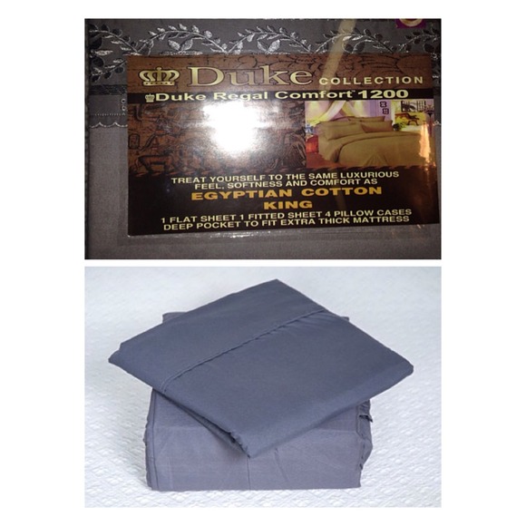 1200 thread count, synthetic Egyptian cotton, embroidered, deep pocket to fit extra thick mattresses, Sheets. Gray King Size. $20 or bundle. 1 flat sheet. 1 fitted sheet. 4 pillow cases. Also available in White.