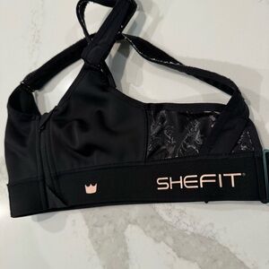 Shefit Flex FrontZip SportsBra Womens Small Black/Silver Marble Print Adjustable