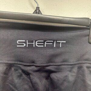 Shefit Medium Black High-Waisted Capri Leggings textured Detailing workout