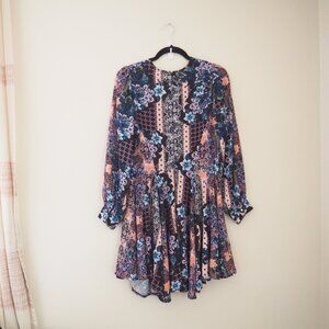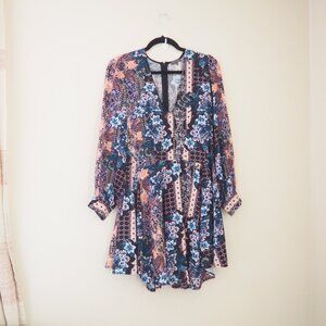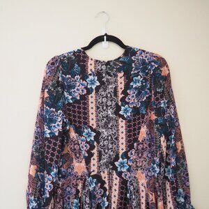 !! Sheike Voodoo Long Sleeve Floral Patchwork V-Neck Dress