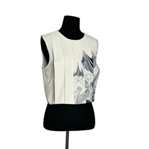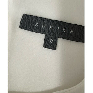 Sheike cream gray flower print sleeveless pleated dress blouse size 8