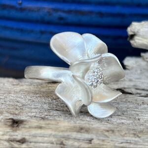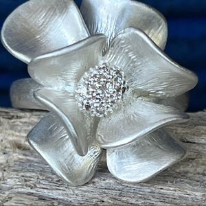 Sheila Fajl Brushed Silver Flower CZ Statement Ring