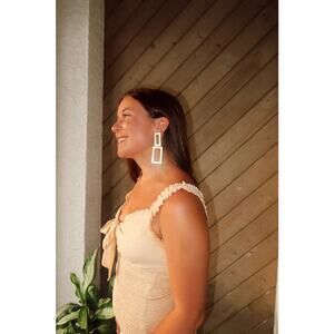 Sheila Fajl Double Rectangle Burnished Silver Drop Dangle Post Earrings NEW