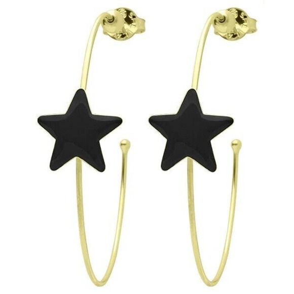 Sheila Fajl Ursa Star Gold Plated Hoops in Black Resin NEW