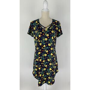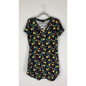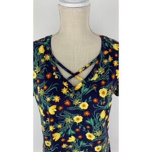 Sheila Rose Womens Blue Short Sleeve Dress Floral Criss Cross Strap Size XL NWT