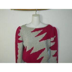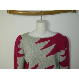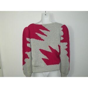 Sheila Raymond Sweater Vintage Gray Pink Abstract Angora Puffy Shoulder Small