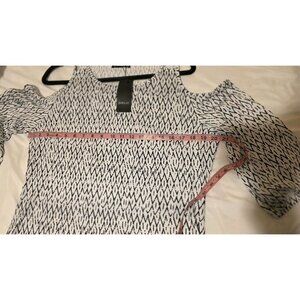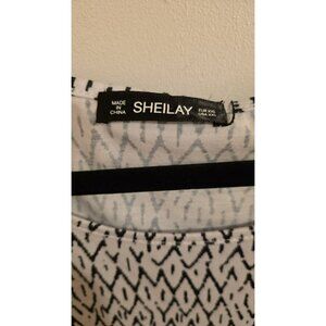 The Sheilay Cold Shoulder Dress is a stylish and versatile option for any special occasion. The dress features a geometric black and white pattern, 3/4 sleeves, a scoop neckline, and a pullover closure. With a size XXL and a long length, it is perfect for a wedding, party, or casual outing. The cold shoulder sleeve adds a touch of elegance, making it a must-have for the fashion-forward woman. This dress is a great choice for the summer, fall, or spring seasons. Missing fabric tag missing care tag.