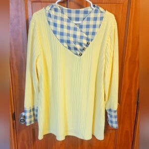 Brand New Never Worn Vibrant Yellow with textured fabric Size 1xl PTP 22in