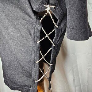 - Rhinestone Lace Up Side Bodycon Dress in Black - Size XL (Stretch material)