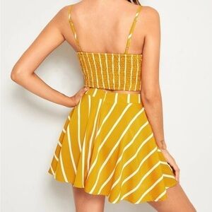 Shein 2 Piece Mustard Yellow Stripe Skirt Set