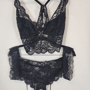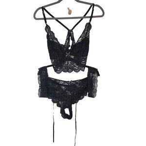 Shein 4 Piece Lingerie Set in Black Floral Lace - Size XL