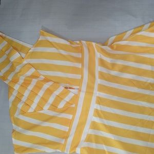 summer dress size large cotton material. yellow and white. one shoulder dress