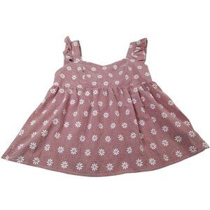Girls A-Line Dress Red Gingham Daisy Printed Pleated Sleeveless Casual Pullover.