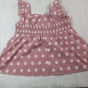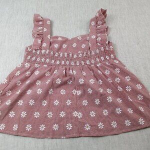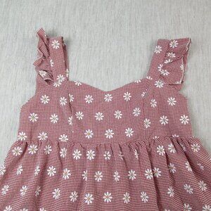 Shein A-Line Dress Red Gingham Daisy Printed Pleated Sleeveless Casual Pullover