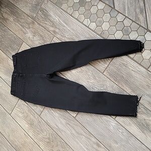 Shein black skinny jeans with a button fly and distressed detailing. Cropped at the ankle with a stretchy fit.