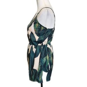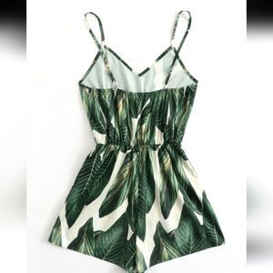 Shein Banana Leaf Adjustable Strap Tropical Green & White Shorts Romper, M