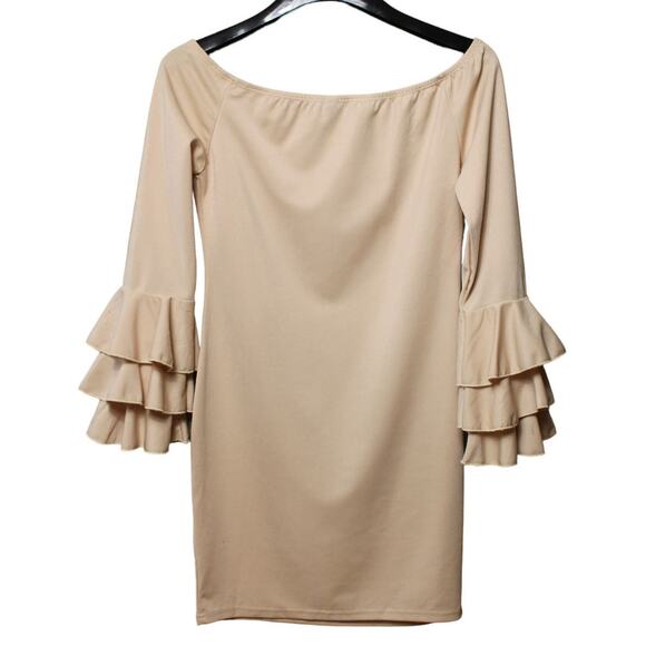 Shein Beige Tan Off the Shoulder Ruffle Sleeve Mini Dress ~ size 8/10, Pre-Loved
