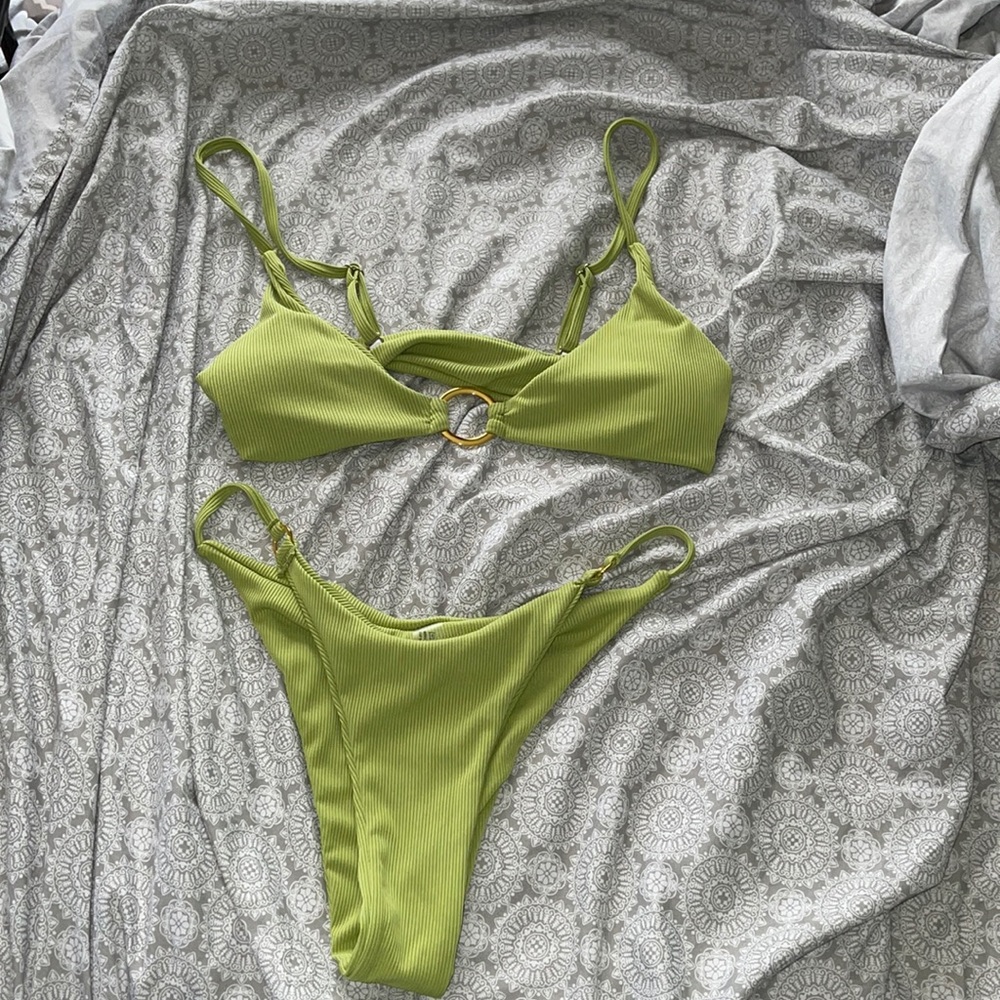 A super cute bikini that has never been worn! It was too small for me:( The bottoms are high cut.