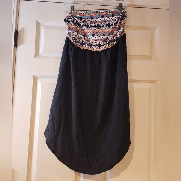 Shein Black Aztec print strapless mini dress 1X
