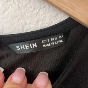 This is black body con midi dress by Shein in a size small. 95% Polyester and 5% Spandex
