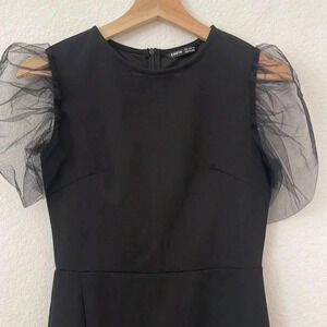 Shein | Black Body Con Midi Dress with Puff Sleeves | Sz S/ US 4