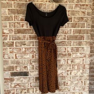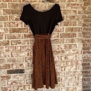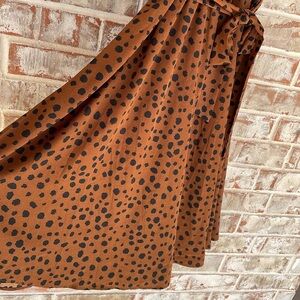 Skirt is circular and gathers at waist -brown with black spots (animal print)-polyester