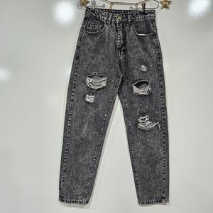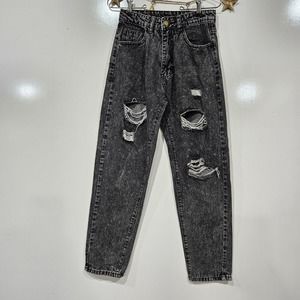 Shein Black Distressed Torn Destroyed Grunge Girly Jeans Size Small 26.5"×27"