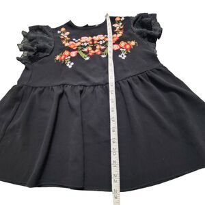 Shein Black Floral Embroidery Mesh Top Shirt Ruffle Sleeve Blouse Size Small