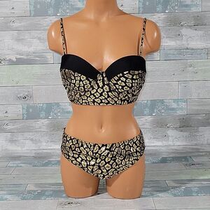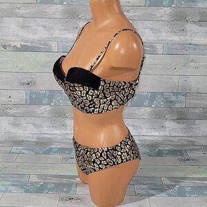 Shein Black & Gold Animal Print 2 Piece Bikini sz Large