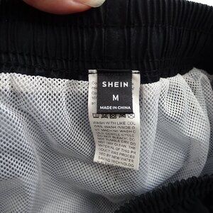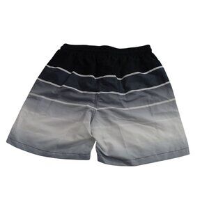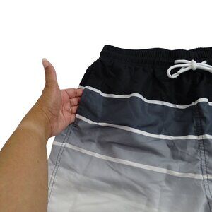 Shein Black Gray Stripe Swim Trunks Men Size M Mesh Lining Pockets