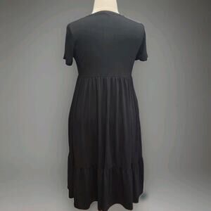 Shein Black Knit Ruffle Hem Midi Dress With Pockets Large/ XL Stretch