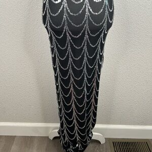 Shein Black & Silver Sequin Special Occasion Sleeveless Maxi Dress Size 14