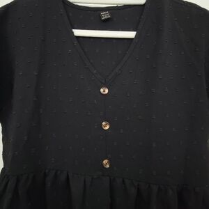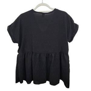 Shein Black Textured Dot Peplum Top Loose Flowy Size Small