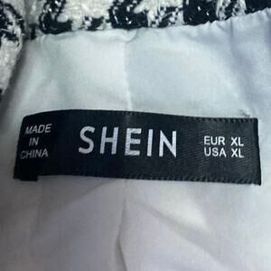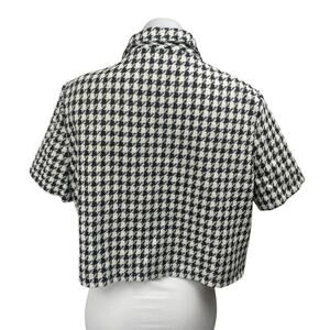 Shein Black White Houndstooth Plaid Check Short Sleeve Button Crop Shirt Top XL