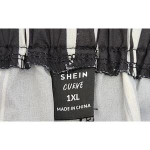 Shein Black White Striped Curve Pull On Pleated Pants 1XL Lightweight Flowy