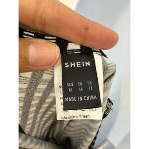Modern and flattering Shein romper featuring a vertical black-and-white stripe print. Designed with spaghetti straps, low sides, and soft stretch fabric that moves with you. Effortless day-to-night style — perfect for layering with a tee or blazer.