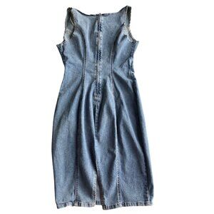 Shein Blue Denim Bustier Bodycon Sleeveless Zip Dress Stretchy Size Large