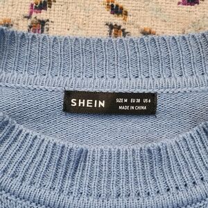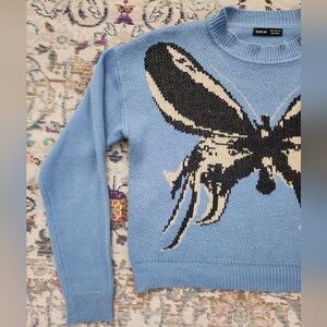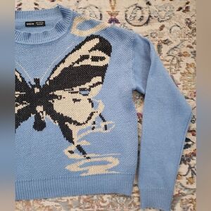 Shein Blue Knit Butterfly Women's Crop Sweater, size Medium