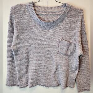 Shein Blue Lavender Metallic Boxy Sweater Crop Knit Fringe Hem Cropped . Good pre owned condition. Approx 23 inches chest, 24 length. Size XL