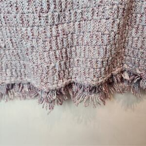 Shein Blue Lavender Metallic Boxy Sweater Crop Knit Fringe Hem Cropped Size XL