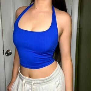 adorable blue ribbed halter tank top from Shein! This top is in excellent condition with no flaws