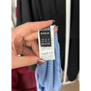 * Keywords: Shein, ribbed mini, bodycon, strappy back, blue, clubwear, casual summer, women’s medium, stretchy knit