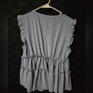 Elevate your style with this chic ruffled top. Perfect for any occasion, this gray top adds a touch of elegance to your wardrobe.
