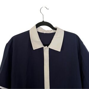 Shein Blue White Trim Short Sleeve Button Up Shirt XL
